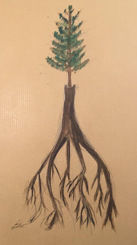The trees listen if we talk to them. During our journey to Pedrogão, we spoke with the trees. I hugged a tree. I heard its silence. Its stories, its wounds, and its pain. I smelled the odor of burnt earth. The trees were in mourning. We carried what was left of them, their black trunks, many of them turned to dust, ash and nothing. We inverted the burnt branches of the trees so that they seemed like roots, being reborn from the earth. And on top of these dead roots we grafted life: little green pine trees. The green of hope. Before we die, each one of us should plant a tree, and speak with it.