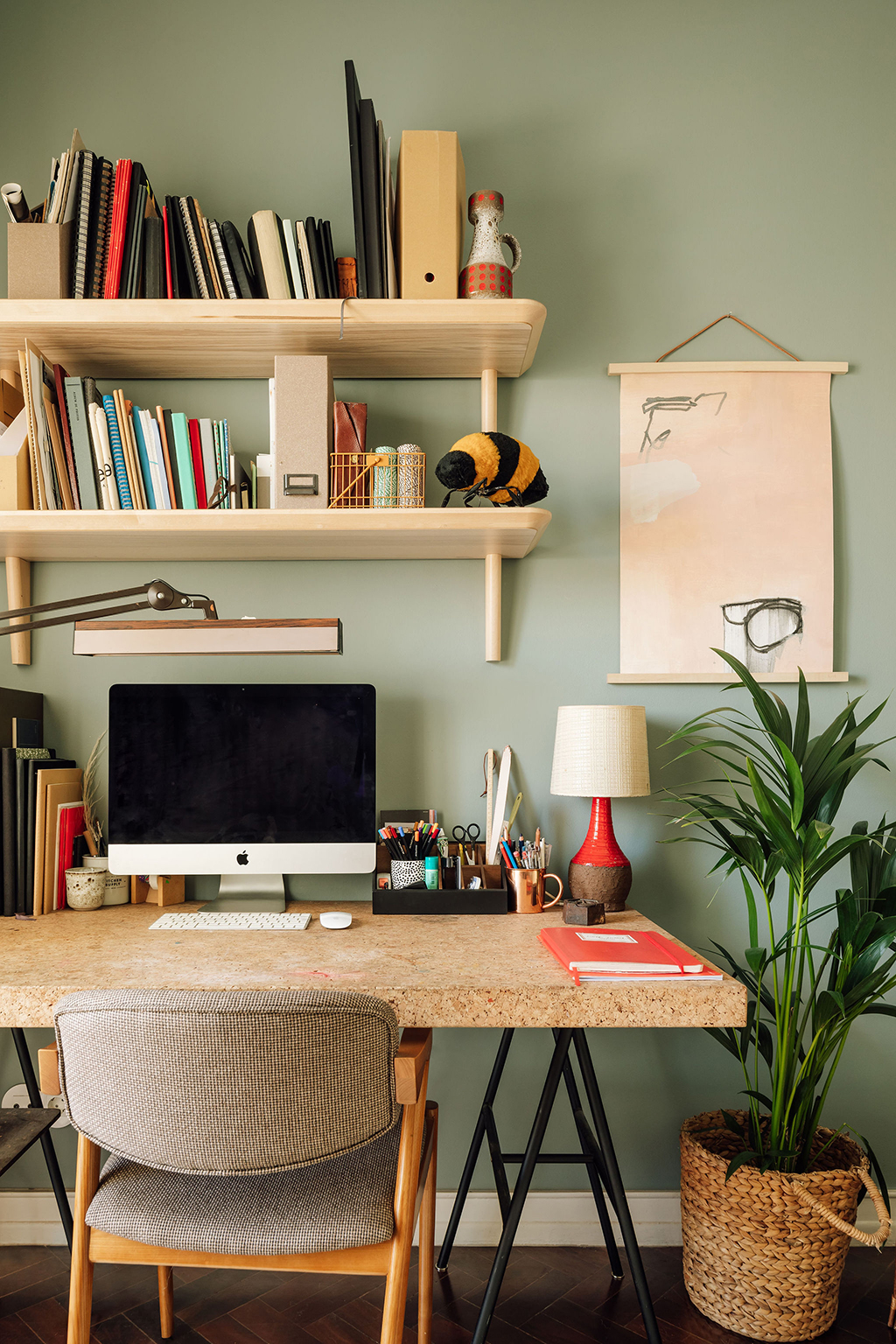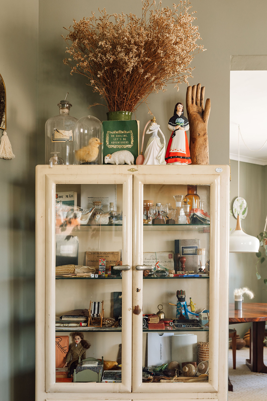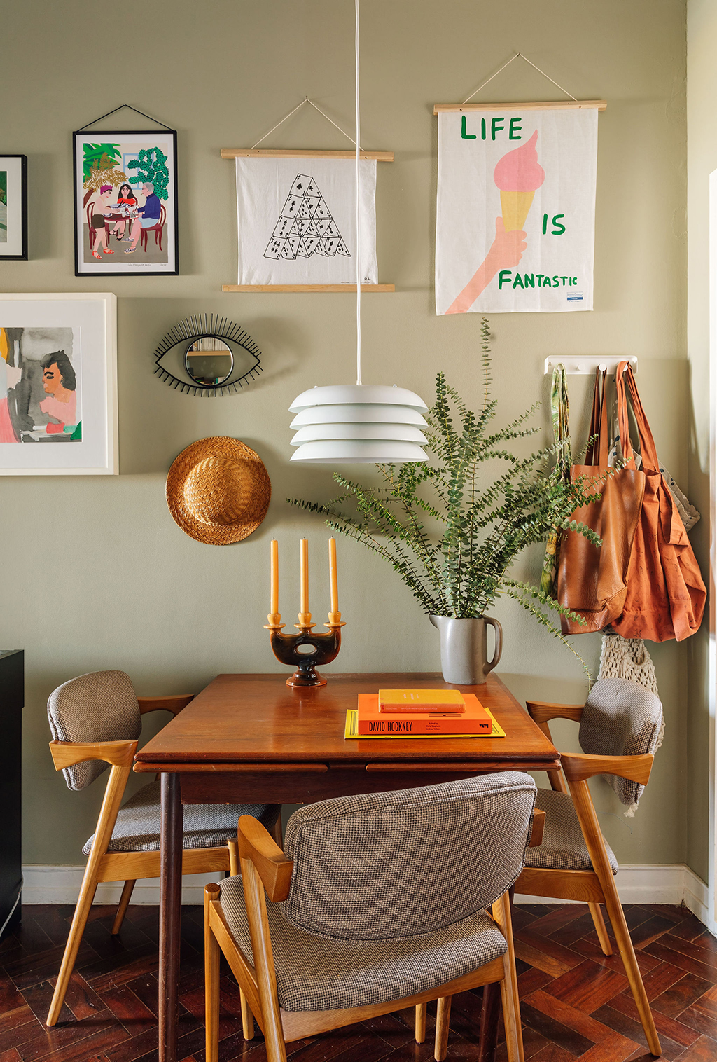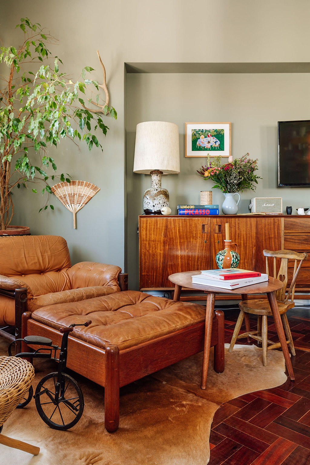 The Portuguese artist, architect and designer Joana Astolfi lives in Lisbon with her six-year- -old daughter Duna and their Dachshund, Lola. Her house nestles on the fifth floor of a classic Estado Novo building in a central urban district. Its 130 square meters are divided into a large living room, kitchen, two bathrooms and four bedrooms; Astolfi uses one of the bedrooms as her home office, and has converted another into a library and music room with a daybed for occasional overnight guests. A small terrace links the office to the master bedroom. She arranges all interior elements - from furniture to color palette to objets d’art - to create distinct spaces (which she calls “moments”) that help to evoke different moods for different times of day. For Astolfi, all “moments” are inclined toward moods of comfort, safety, happiness and joy. “My house is an embodiment of my personality,” she says. “The objects that I love to have near me - they’re actually my way of life, my interests, narratives, my memories, that accompany me everywhere I go.” Even - and perhaps especially - when she is not going much of anywhere: while working and schooling Duna here during the past year, Astolfi has come to appreciate the comfort and functionality of home more than ever. For her, the aesthetic beauty of her space is also “essential.”