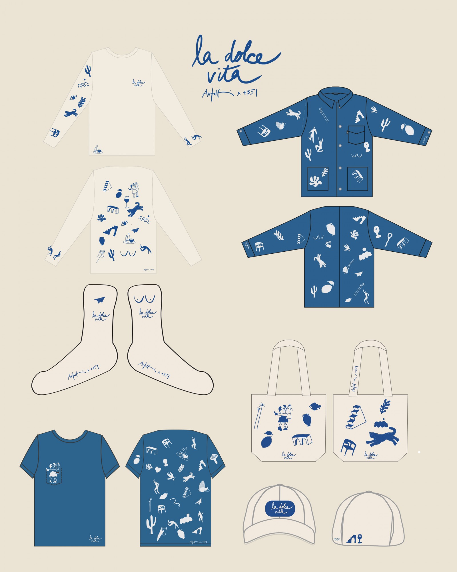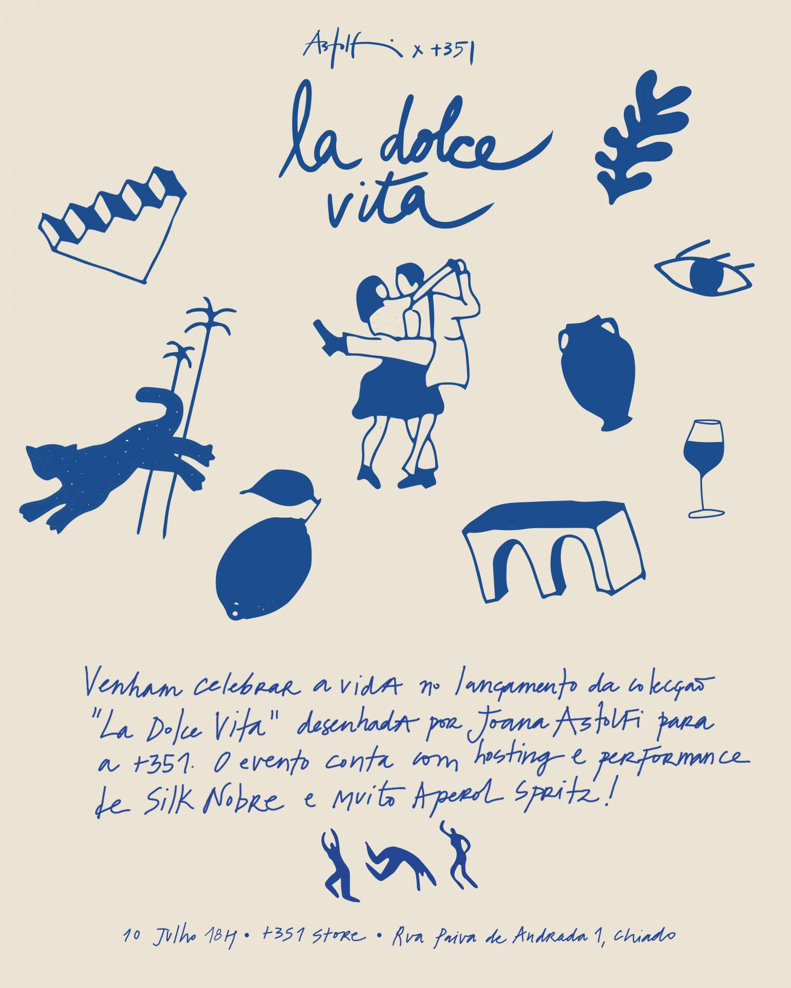 In mid-2024, architect and designer Joana Astolfi joined forces with Lisbon-based lifestyle brand +351 to launch La Dolce Vita—a limited-edition capsule collection that blends Astolfi’s poetic storytelling with +351’s surf-inspired, sustainable ethos.