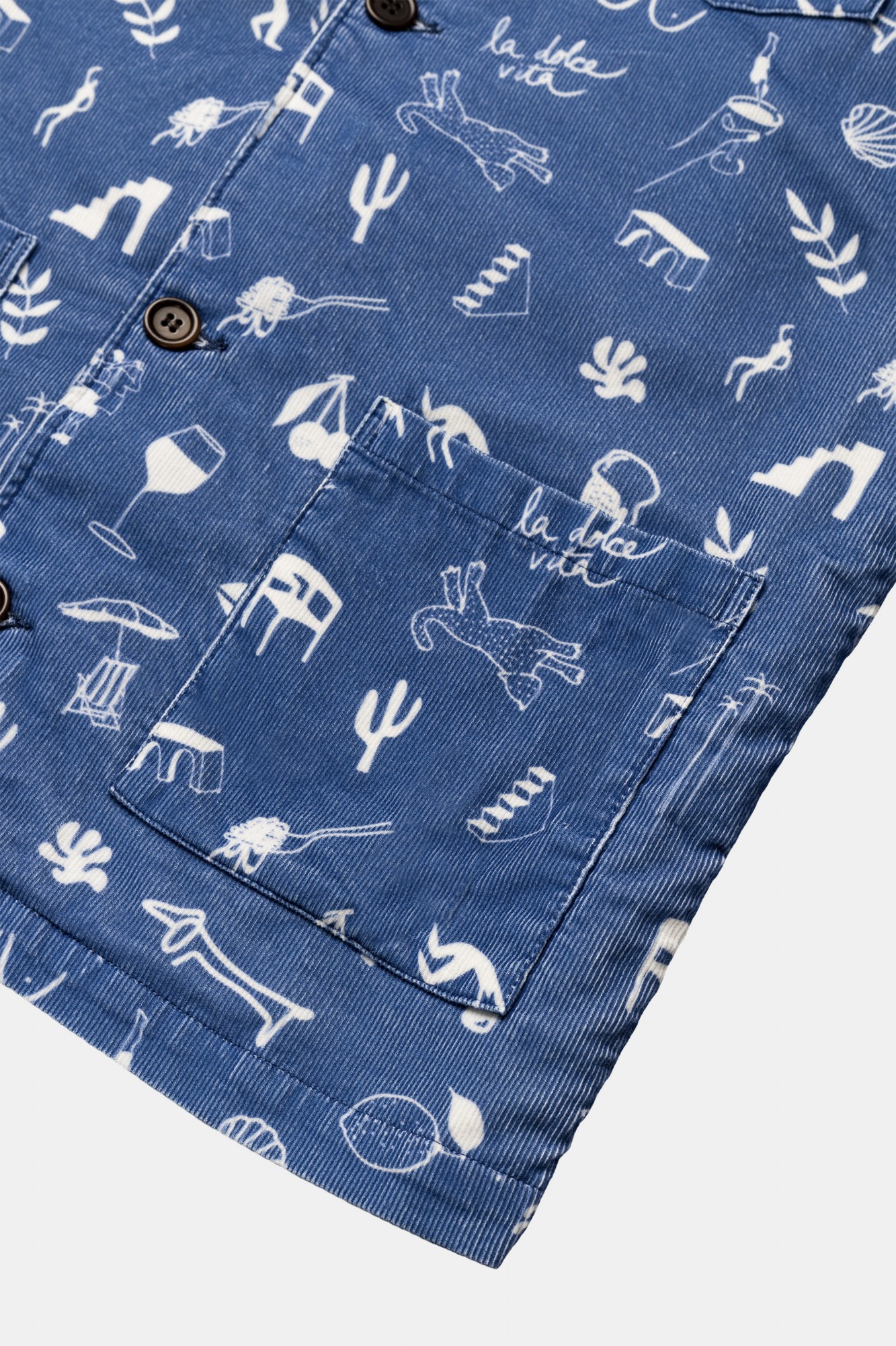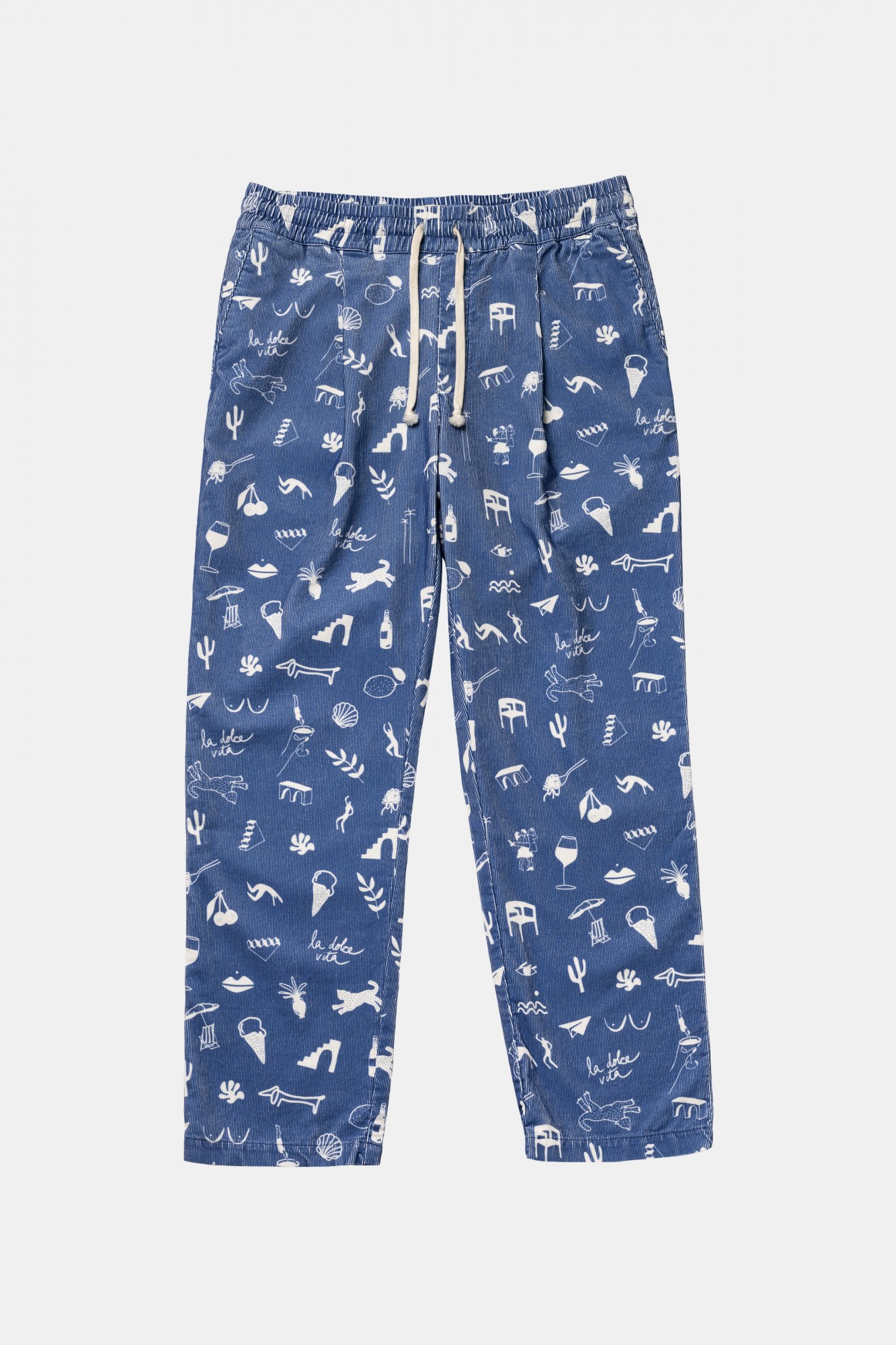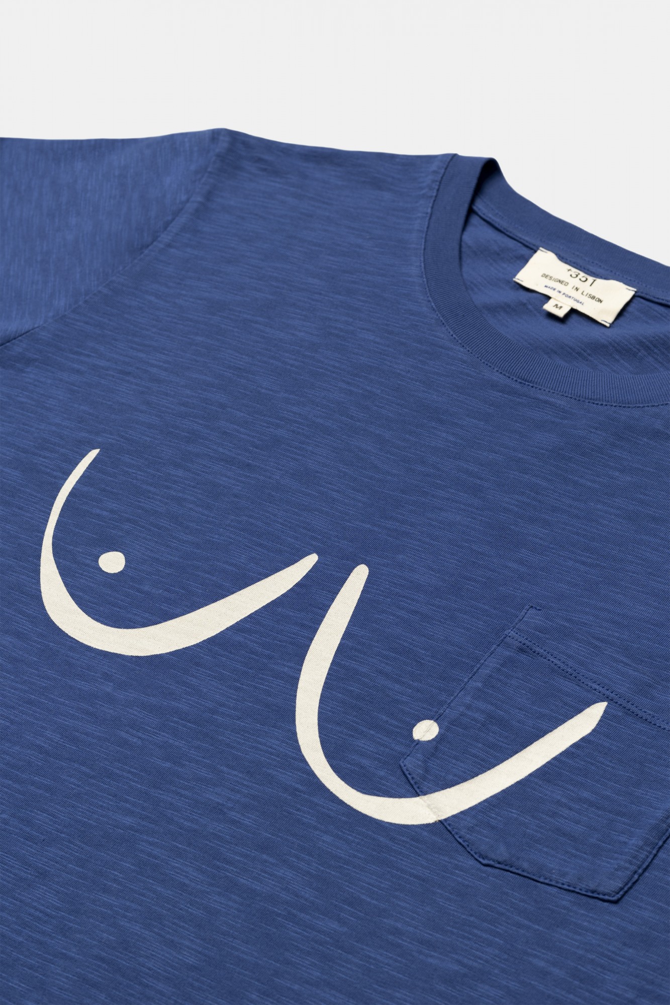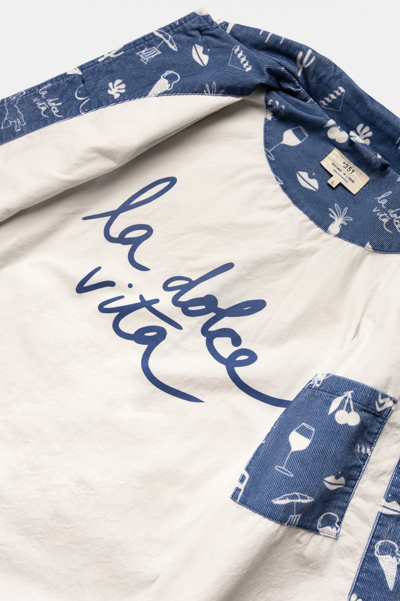 This unisex collection features eight essential pieces made from organic cotton, including T-shirts, sweatshirts, pants, a jacket, a tote bag, socks, and a cap—all crafted entirely in Portugal. The collection’s crisp cream and bold steel-blue palette provides a fresh backdrop for whimsical symbols: dancing couples, ice cream cones, lemons, seashells, paper planes, lips, and playful swimmers. These elements represent the small pleasures of summer and mirror Astolfi’s personal universe.