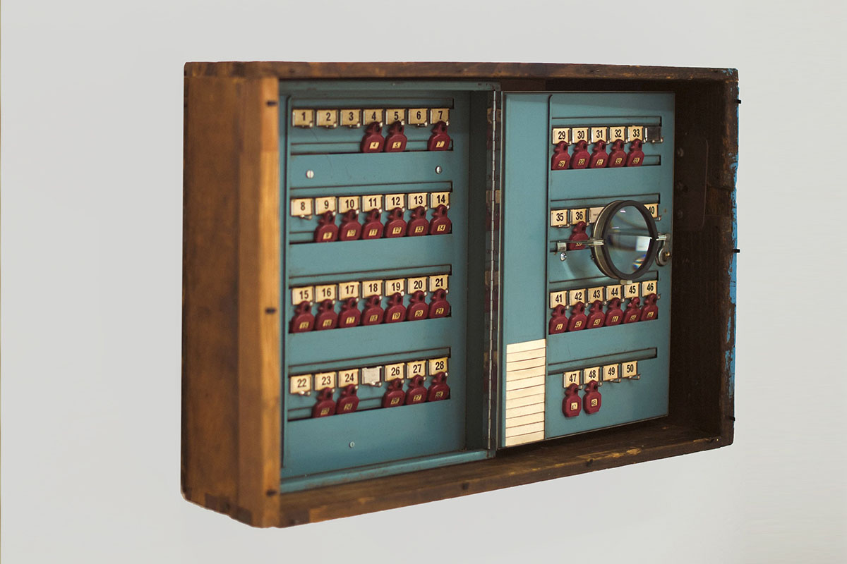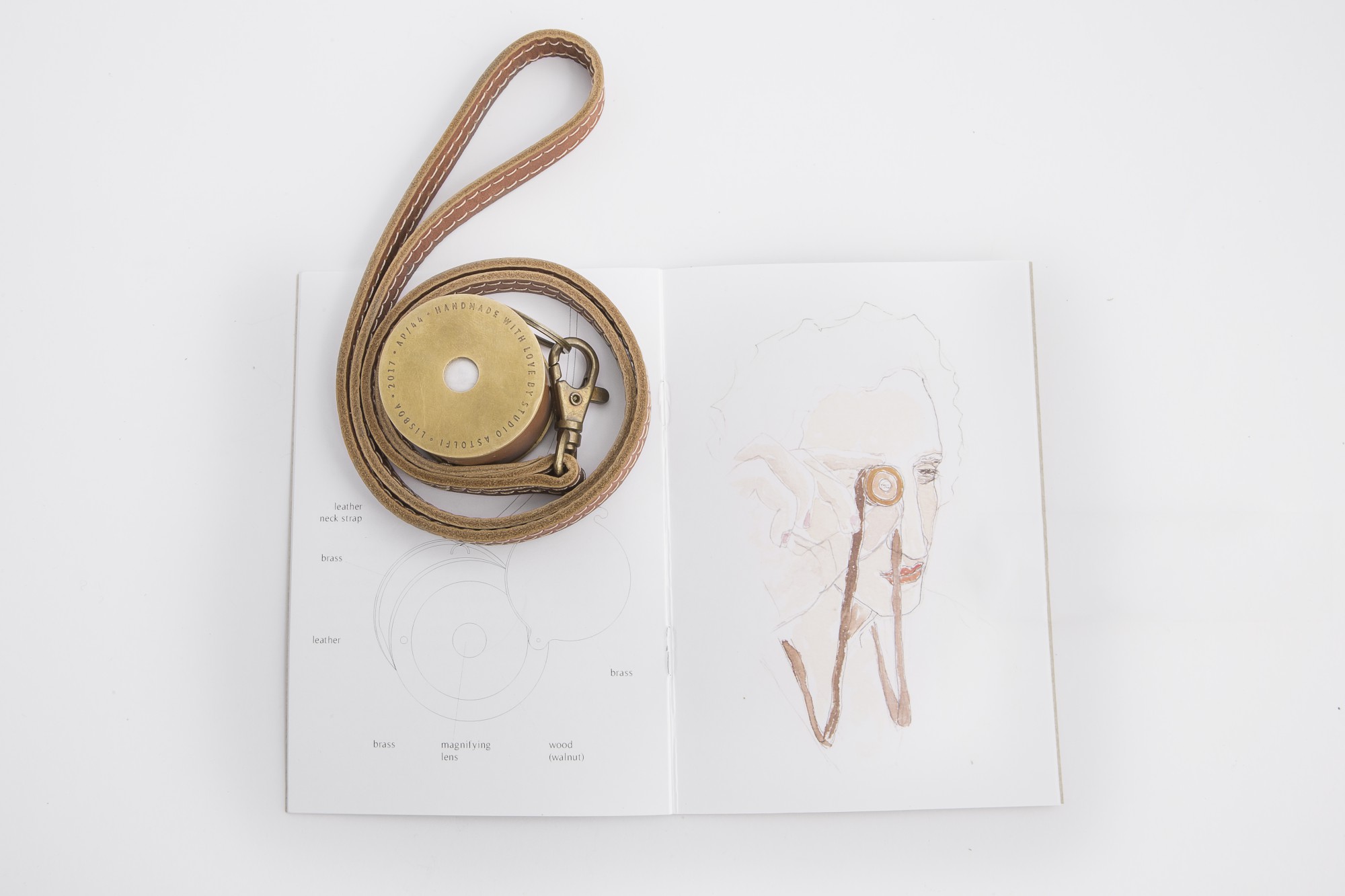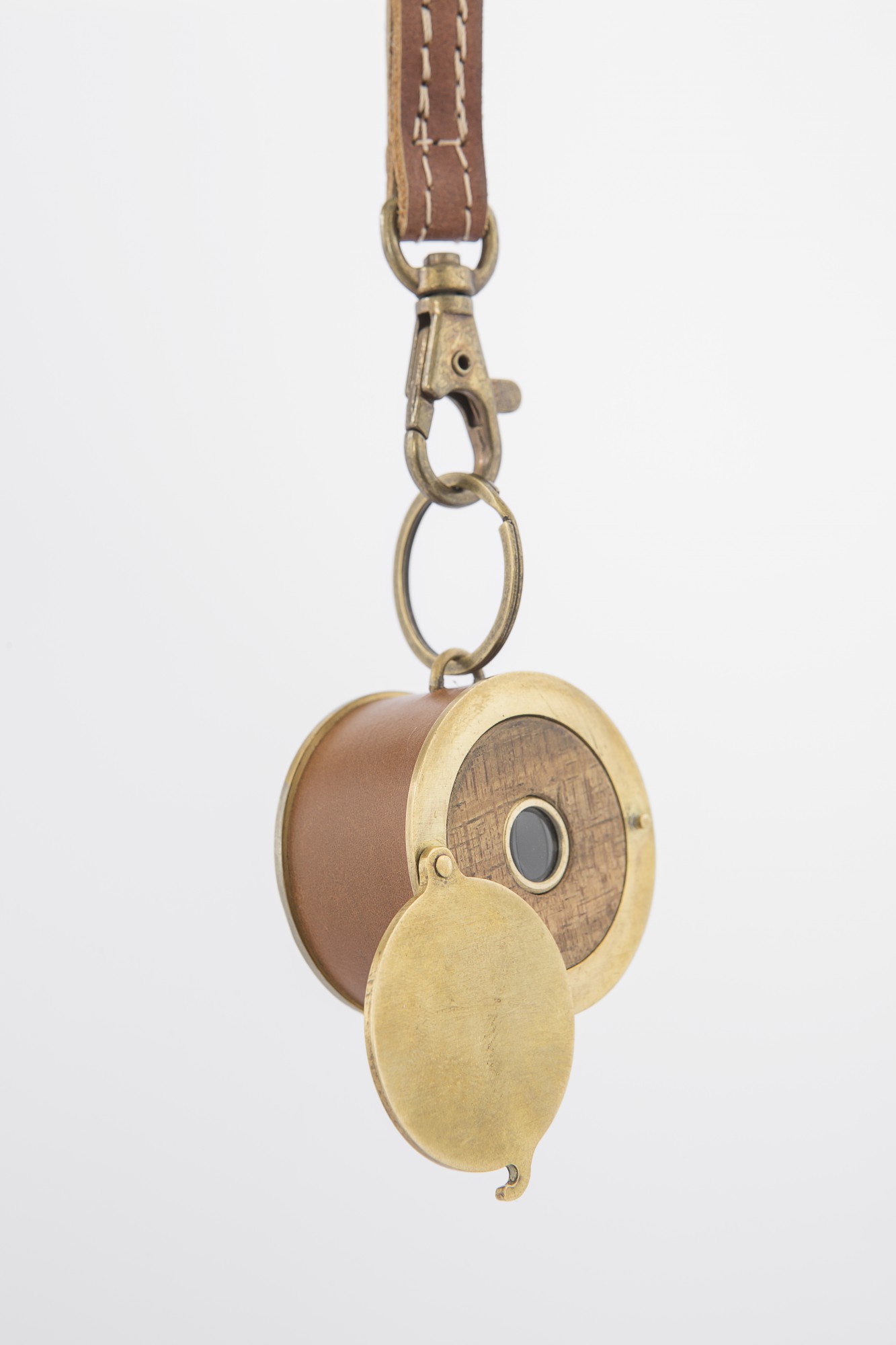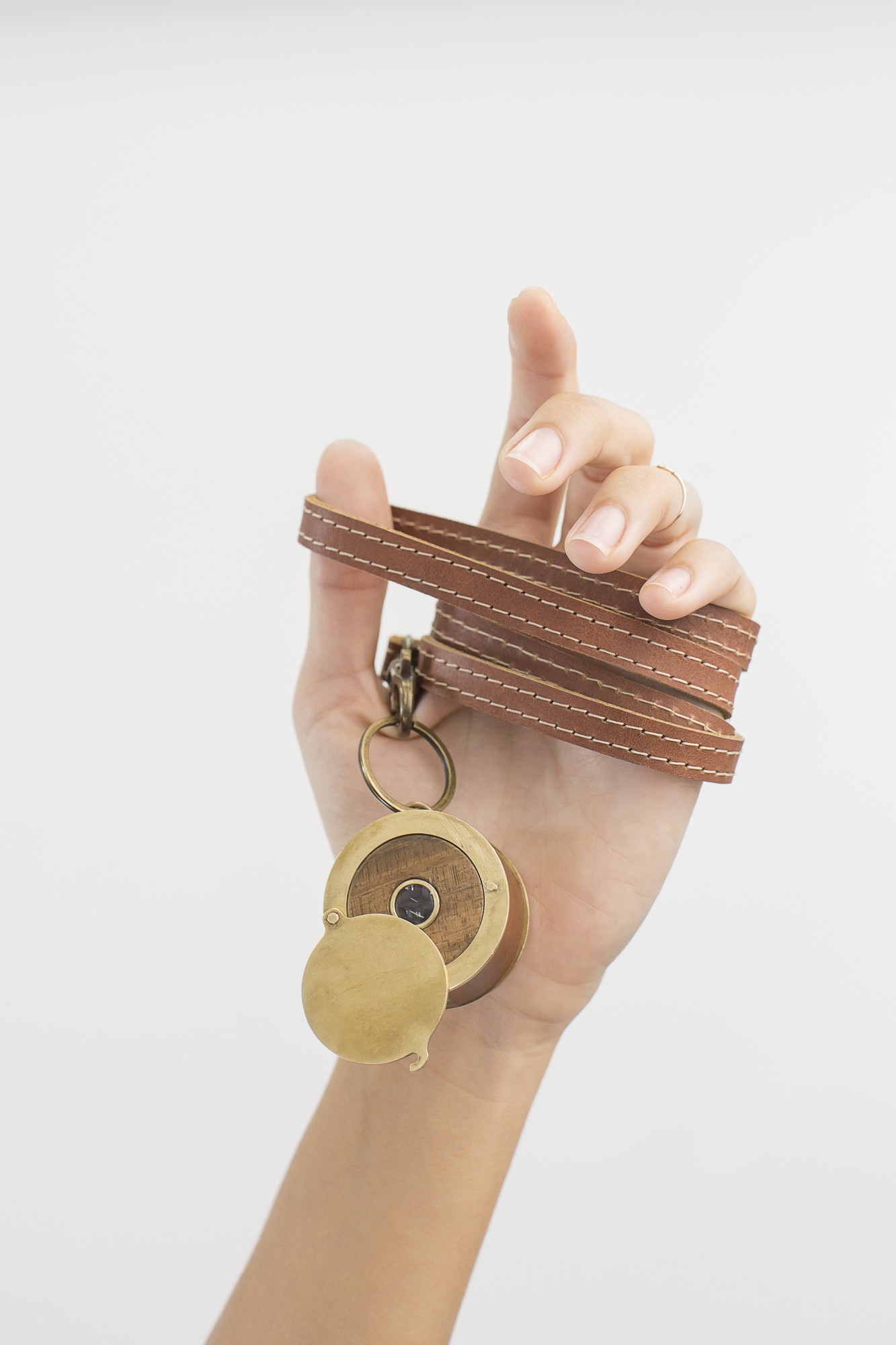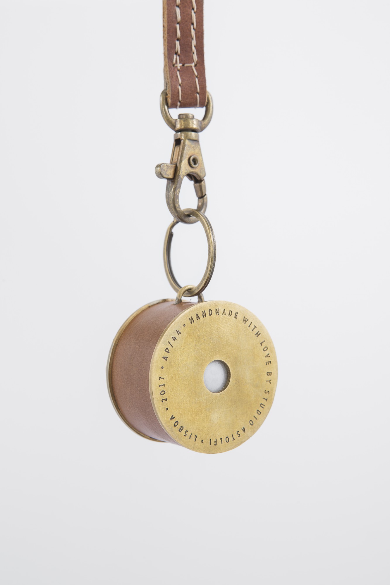 Keychain designed for Liberdade 203, by Studio Astolfi (2017). Wood, brass, leather and glass.