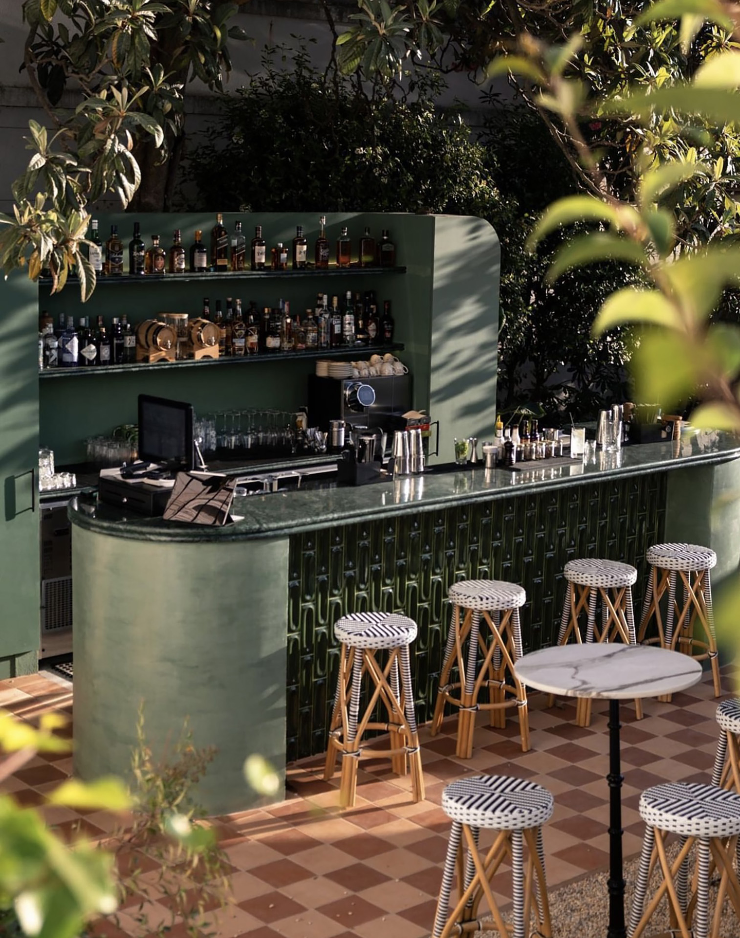 Studio Astolfi designed Ninho Clubhouse in Lisbon as a vibrant playground for balance—where “work hard, play harder” isn’t just a motto. Glossy green tiles glisten under canopy, while natural raffia and fresh green-and-white tones add richness and texture.